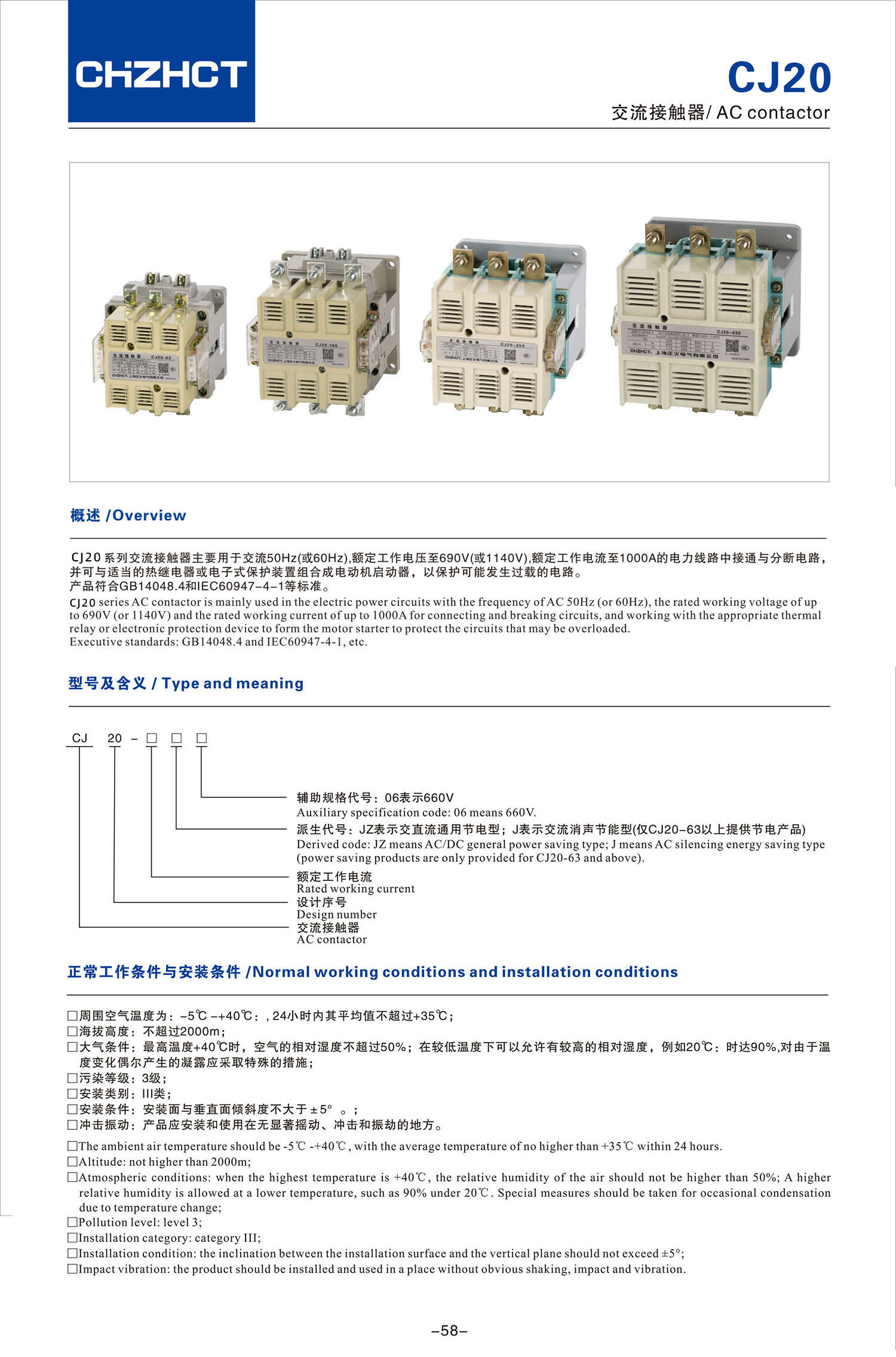CJ20交流接触器产品说明书