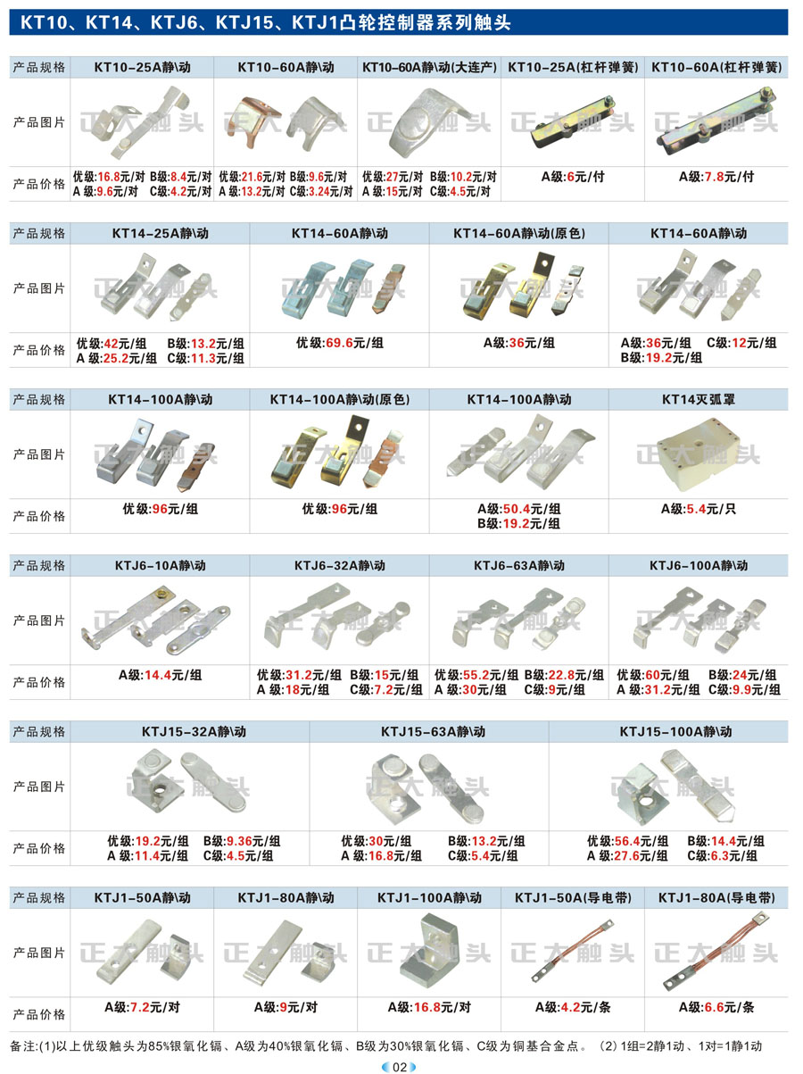 KT12、LK1、KTJ5、LK18、LK17、THQ1、TQKT凸轮控制器系列触头、CJT1交流接触器触头