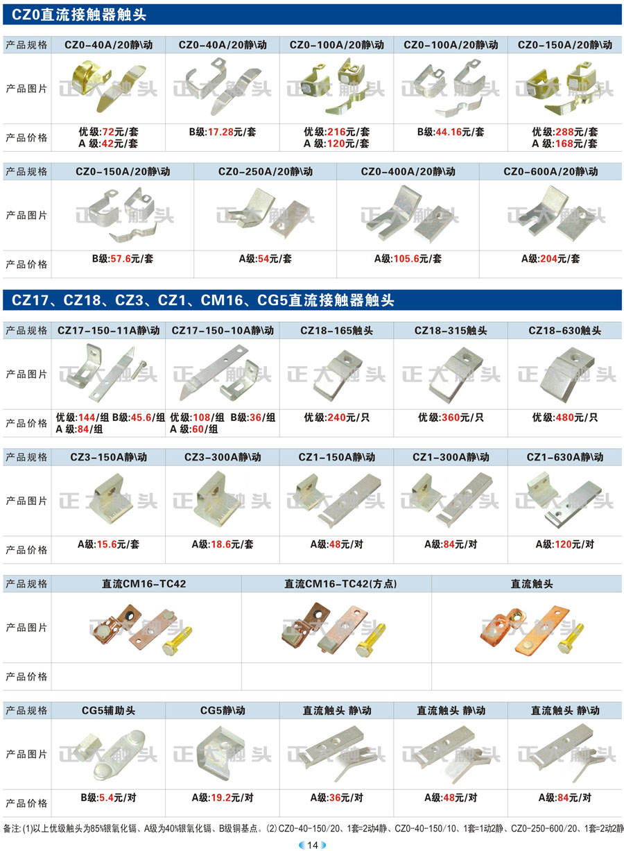 CZ0、CZ17、CZ18、CZ3、CZ1、CM16、CG5直流接触器触头