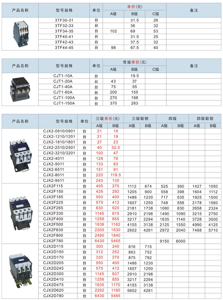 3TF、CJT1、CJX2、CJX2交流接触器
