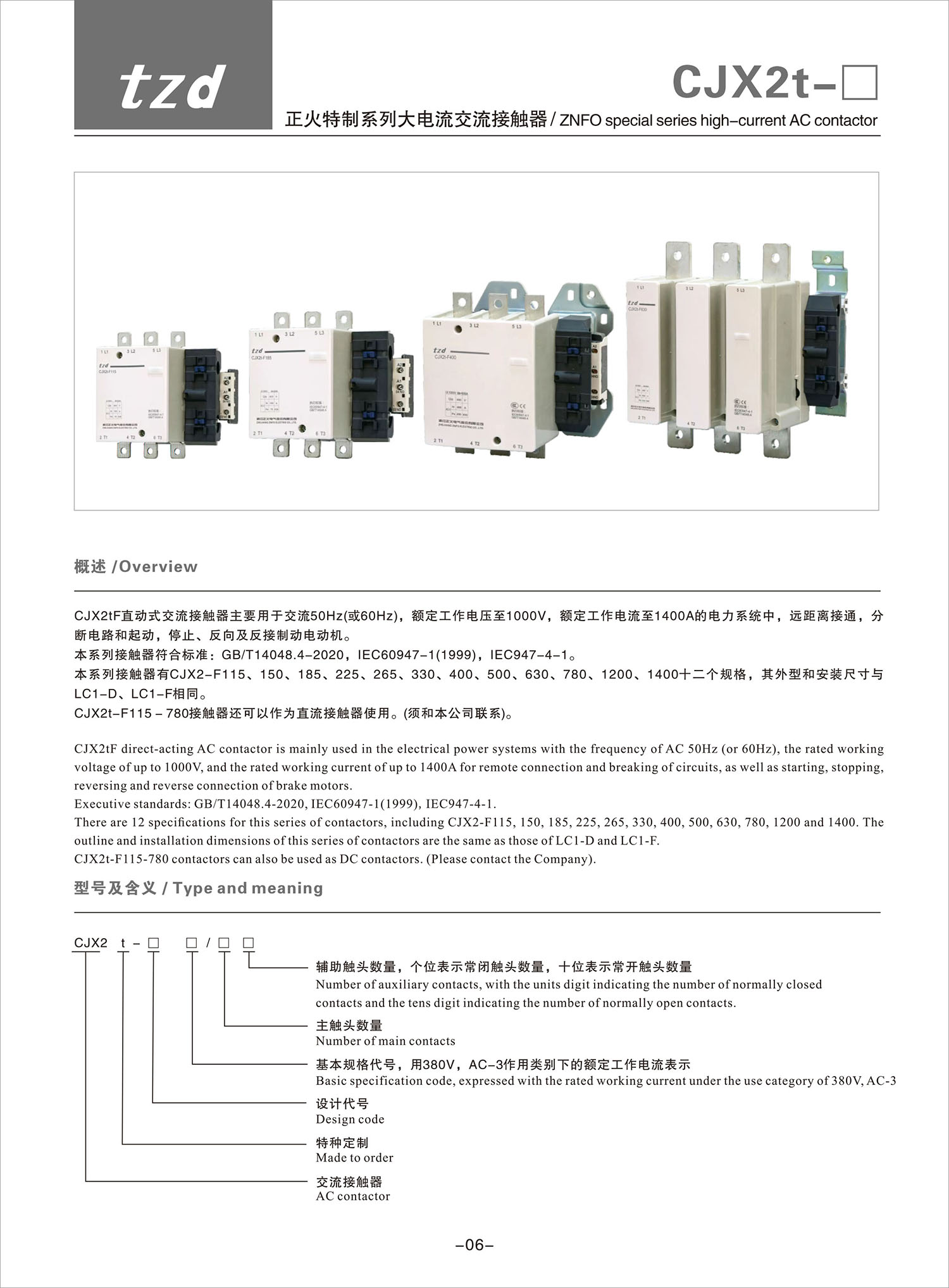 CJX2t-F KY.COM-开云(中国)特制系列大电流交流接触器产品说明书