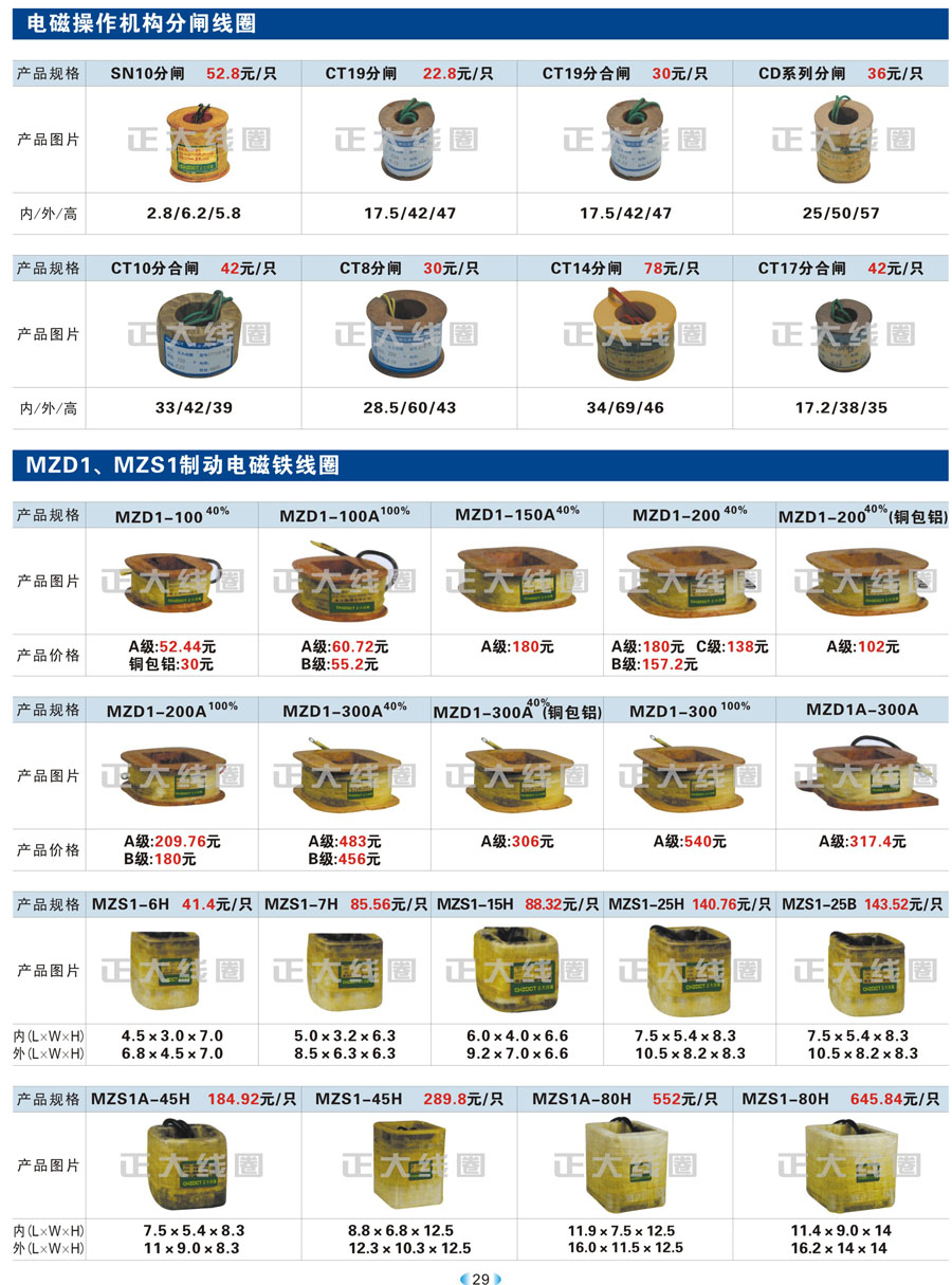 电磁操作机构分闸线圈、MZD1、MZS1制动电磁铁线圈