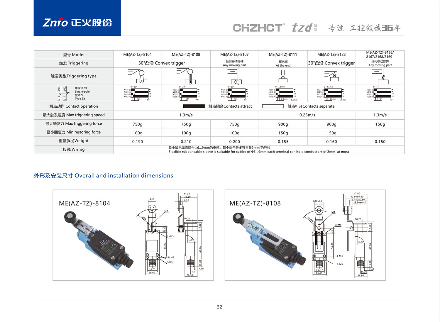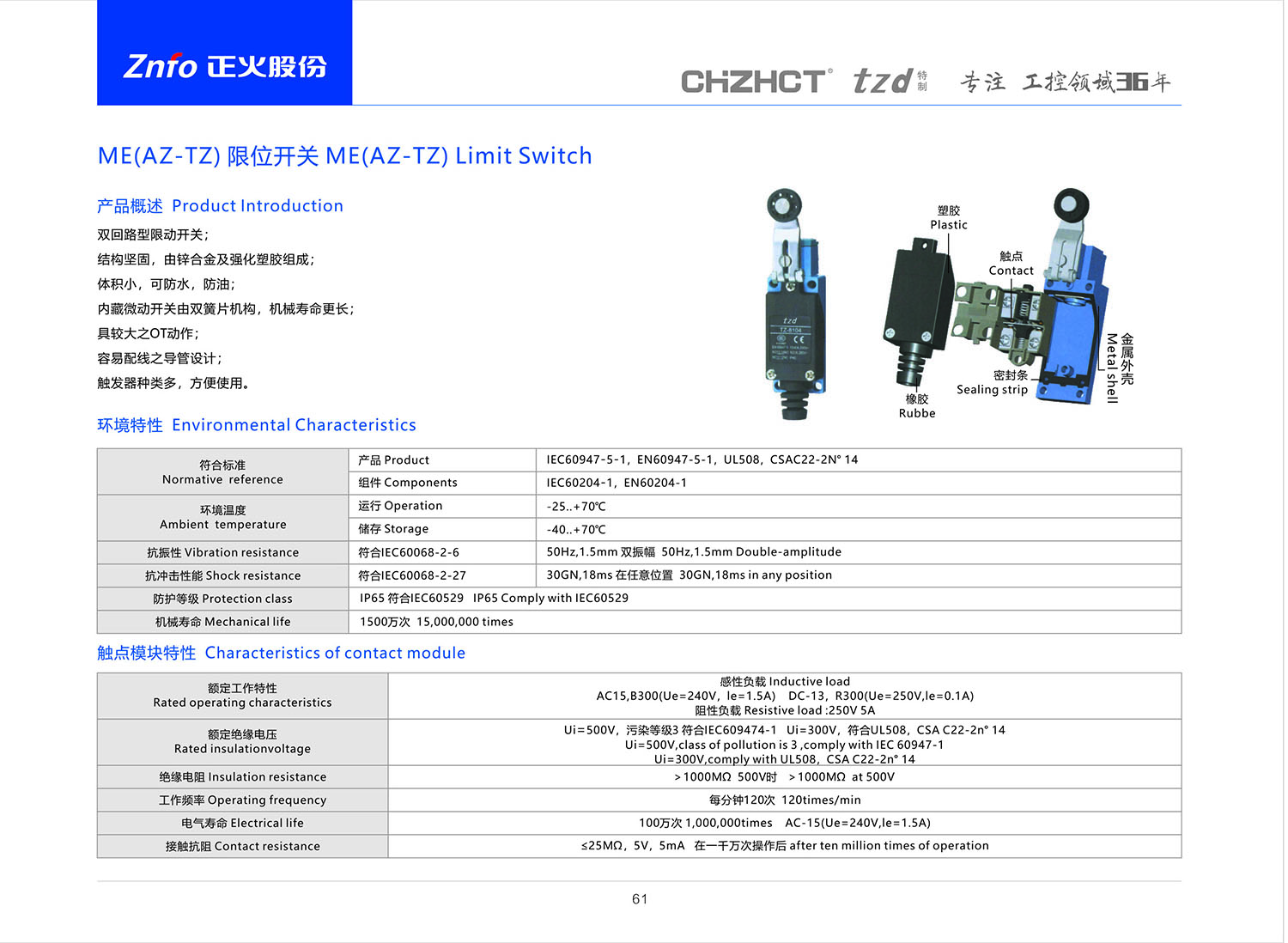 ME(AZ-TZ)限位开关_行程/限位开关_行程/微动/跑偏/拉绳/超速_工业控制与保护_产品中心_KY.COM-开云(中国)电气股份有限公司